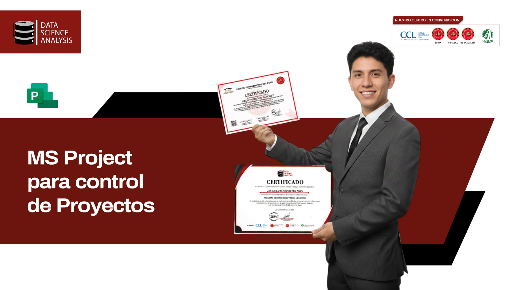 - Certificación oficial emitida por Data Science Analysis respaldado por el CIP, CCL y CORLAD